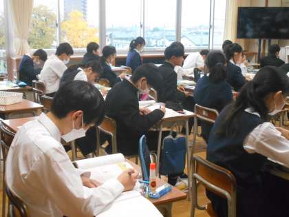 数学の授業では、テント直線の距離について考えたり、垂直二等分線の作図をしたりしました。理解は進んだでしょうか。