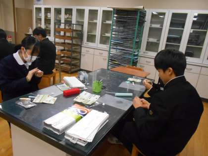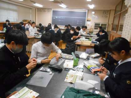 美術の授業では、紙粘土での作品制作を進めていました。本物そっくりの八つ橋を作るそうです。