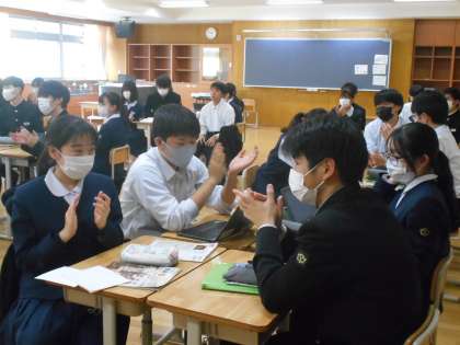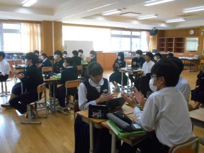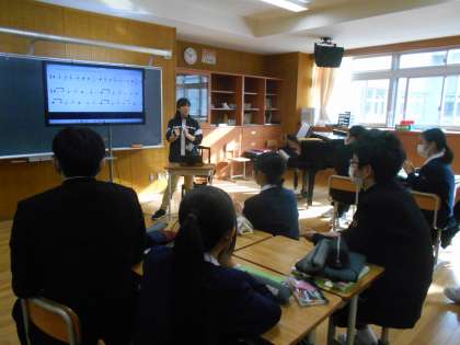 音楽の授業では、リズムの勉強をしており、音符を見ながら手拍子をして練習をしていました。うまくできたでしょうか。