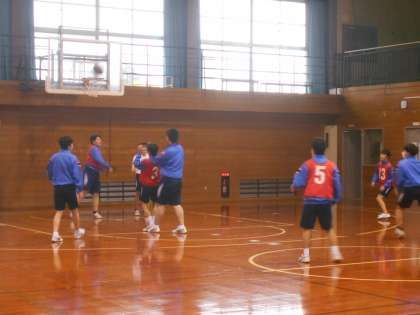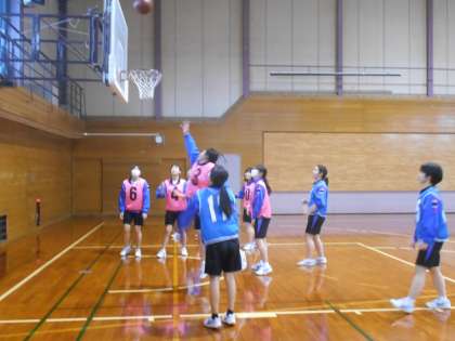 保健体育の授業はバスケットボールでした。男女別にチームを作り、対戦形式で練習しました。うまくパスをつないでシュートできたでしょうか。