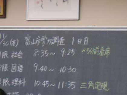 11月30日(木)3学年 富山市中3学力調査1日目(その1)