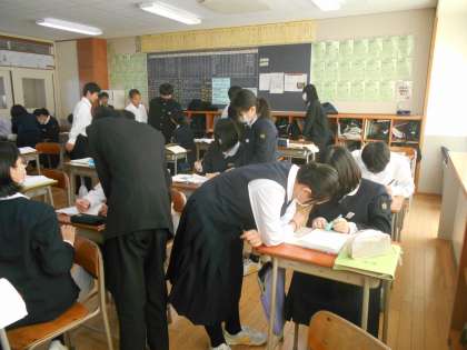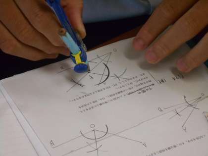 数学の授業では、角の二等分線を作図しており、コンパスを上手に使って問題を解いていきました。