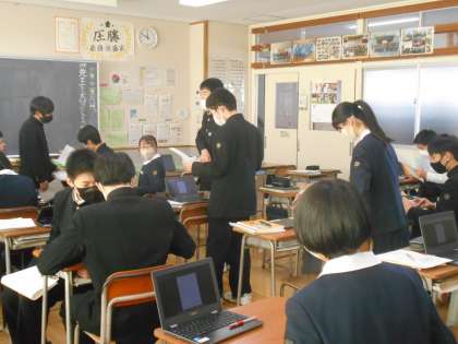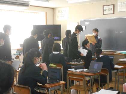 数学の授業は、ちょうどテストが返されるところでした。もらった人からChromebookで正答例を確認したり、友達と確認したりしていました。