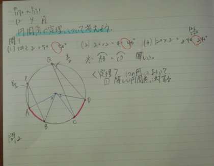 数学の授業では、円周率の定理について、ノートに書いて頭の中を整理しながら考えました。理解は進んだでしょうか。