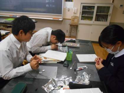 美術の授業では、紙粘土を使って細かな細工を施した作品づくりを進めています。こねる作業は小さい頃から随分やっていないのではないでしょうか。