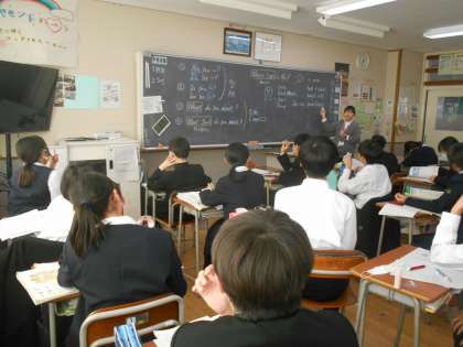 英語の授業では、テストの振り返りをしており、「助動詞の後は動詞は原形」ということも確認できました。