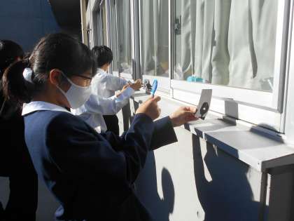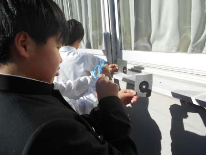 理科の授業では、虫眼鏡と黒い画用紙を使って、太陽光の焦点を合わせる実験をしました。太陽光の力はすごいです。