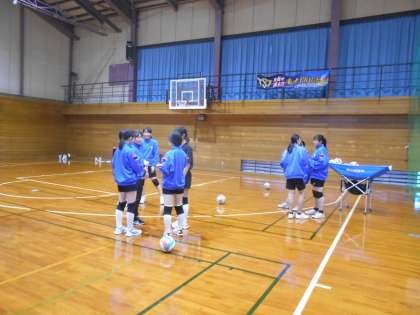 バドミントン部とバレーボール部の様子です。コート半面ずつの練習でしたが、指導を受けながら練習ができました。