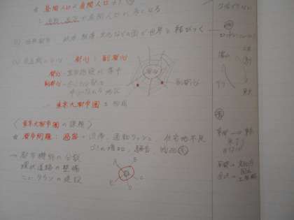社会の授業では、東京大都市圏の課題について考えており、過密、渋滞、ゴミの増加等が意見としてあがり、その解決策を考えました。