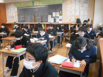 理科の授業では、天気図の記号を覚えるとともに、寒冷前線や温暖前線等があったときにはどんな天気になるのか、具体的に考えました。