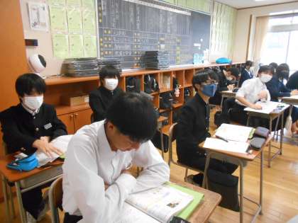 社会の授業では、時々資料集を開きながら授業が進みました。この仲間と勉強するのも、後数ヶ月ですね。