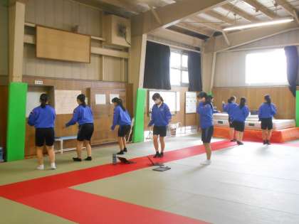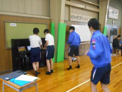 保健体育の授業では、ダンスの練習が進んでいます。アイディアを出し合い、思いっきり踊りましょう。