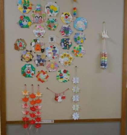 2学年のフロアに素敵な折り紙作品のコーナーがあります。とても細かな作品でその器用さにびっくりします。最近色鮮やかな紅葉の作品も飾られました。季節を感じさせるコーナーに心が癒されます。