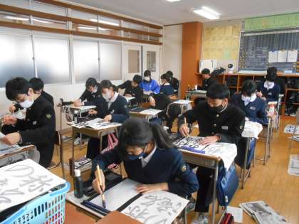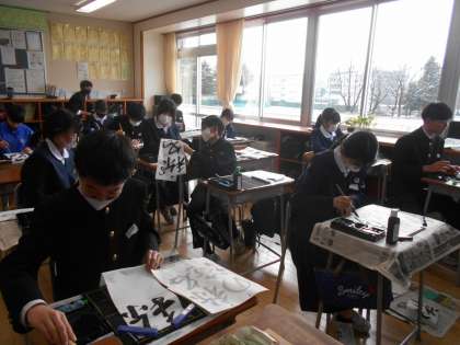 国語ノン授業では、書き初めの練習をしました。家でも冬休み中にしてみるとよいですね。
