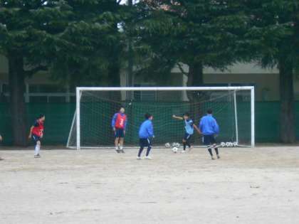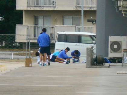 陸上競技部とサッカー部の様子です。練習メニューを確認しながら進めていました。
