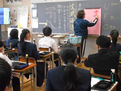 国語の授業では、書き初めの練習をしたクラスもあり、先生のお手本を見てから練習をしました。