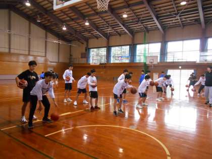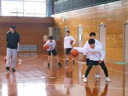 男子バスケットボールの様子です。基礎練習からみっちり練習をしました。