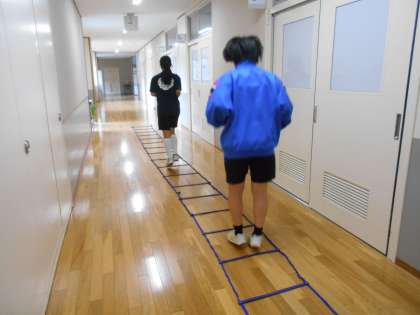 ソフトボール部も校舎内での練習をしました。ラダー等決まっているメニューを順番に進めていました。