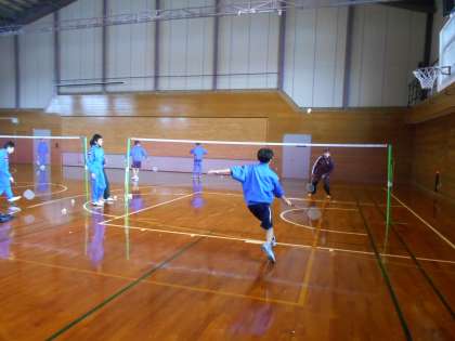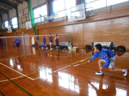 バドミントン部男子の様子です。コートを使って、思いっきり練習ができました。