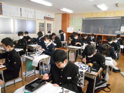 1年生は文武両道と書きました。一画一画丁寧に筆を運んでいました。