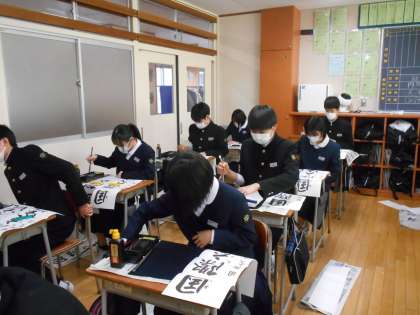 3年生は「国際交流」と書きました。中学校を卒業して、一つ大きな社会に出る3年生には、ぴったりの言葉です。