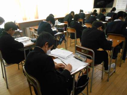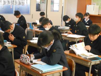 社会の授業では、テスト直しをしており、ノートにポイントを分かりやすくまとめていました。