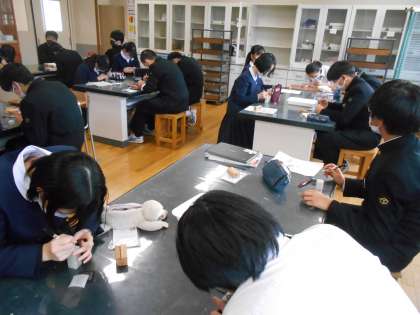美術の授業では、篆刻の制作を進めています。今日は下書きに入った人が多くいました。完成が楽しみです。