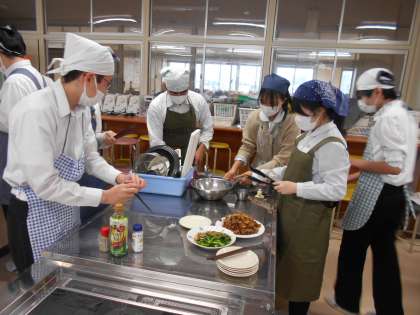 家庭科の授業では、豚の生姜焼きと魚のムニエルの調理実習でした。3年生にとっては中学校最後の調理実習かもしれません。