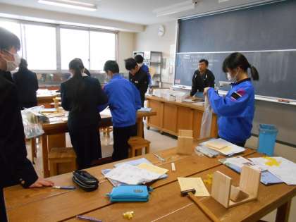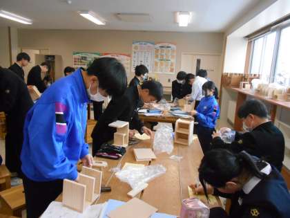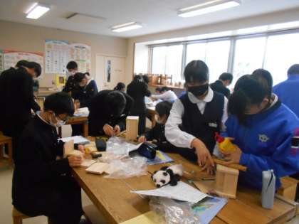 技術の授業では、木製本立ての製作が進んでいます。もう一息で完成です。