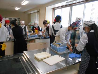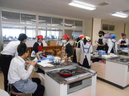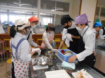 家庭科の授業では、豚の生姜焼きに挑戦しました。みんなおいしくできたようです。後片付けもてきぱきできており、ばっちりでした。