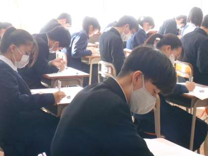 3年生は、実力テストに取り組みました。今日は、社会、国語、理科の3教科です。
