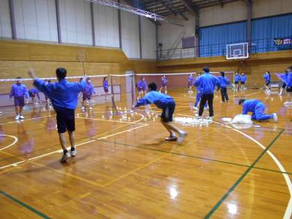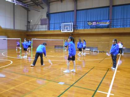 バドミントン部は、3コートに分かれて練習です。時間を有効に使って取り組みましょう。