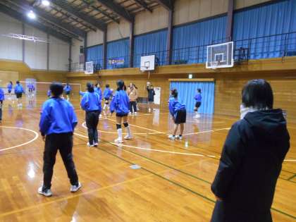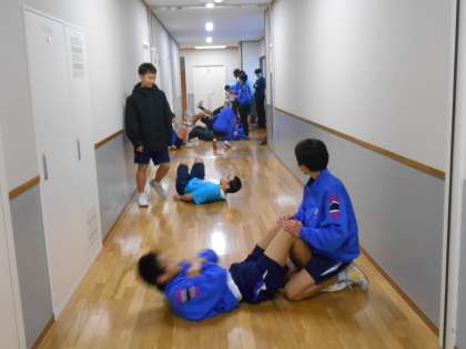 バレーボール部はレシーブ練習、陸上競技部は筋力トレーニングに取り組みました。みんな頑張っています。