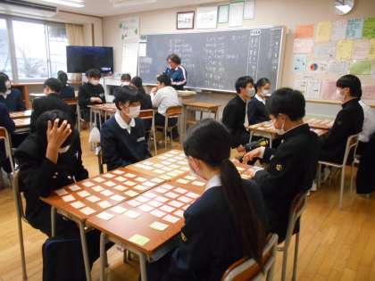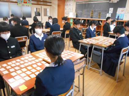 国語の授業では、1首でも覚えよう!という目標で、明日の百人一首大会に向け、練習をしたクラスもありました。