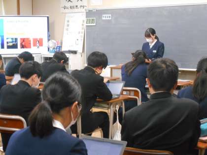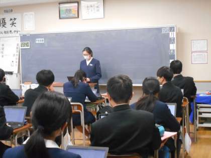 英語の授業では、冬休みの宿題の発表会でした。それぞれが選んだ人物紹介を聞き、その人物についていろいろなことを知ることができました。