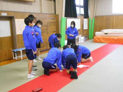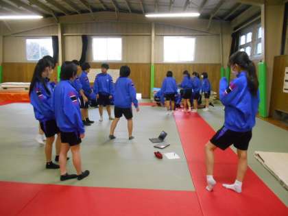 保健体育の授業では、ダンスの構成、取り入れるステップ等、班ごとに考え、進めていました。