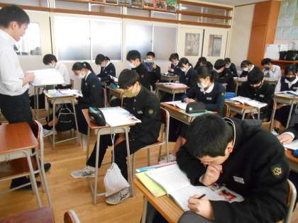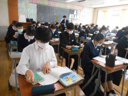 英語の授業では、本文の内容を読み取るために、まずは範読を聞きながら、内容をつかむことに努めていました。