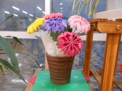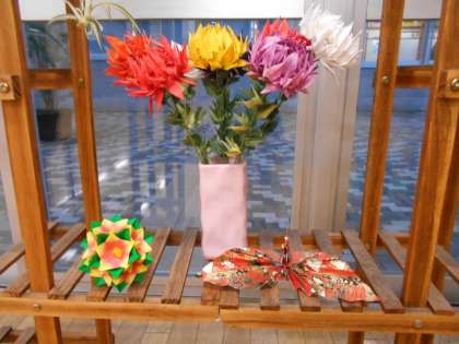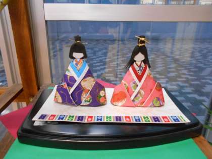 生徒玄関エコスペースには、とっても素敵なひな人形が登場しました。本校職員のご家族が制作された折り紙の作品です。この他にもお花の作品も展示させていただくことで、生徒玄関が潤っています。ありがとうございます。
