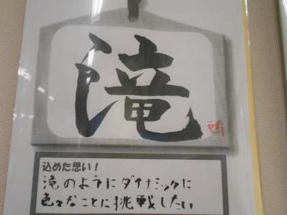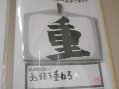 2年生のクラスには、今年の目標を表した一文字が掲示されています。勉強を重ねるの「重」、滝のようにダイナミックに挑戦する意味を込めた「滝」といったものもありました。力強さを感じますね。