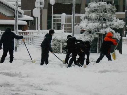 今日は、雪が20センチ近く積もりました。残念ながら今日は除雪車が入らなかったので、教職員が除雪する中、除雪当番の3年2組の皆さんを中心に協力をしてくれました。お陰で玄関前があけられ登校がスムーズにできました。ありがとう。