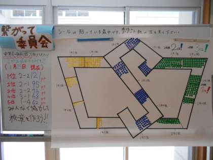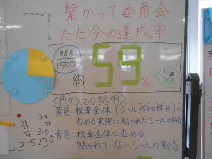 生徒kし執行部が進めている「繋がって委員会」の達成率の状況です。1月23日現在で59%になりました。年度末の3月には100%になることを目指して頑張っています。
