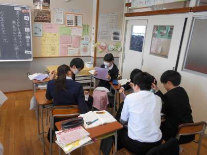 国語の授業では、物語の主人公が各場面でどのような気持ちだったかについて、グループで意見を共有しました。本文の記述を根拠にしながら、積極的に考えを伝え合う姿がありました。