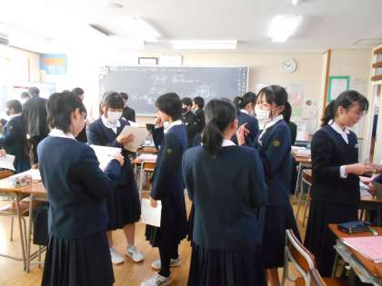 英語の授業では、Whichを使って、どちらが好きかをインタビューしていました。答を集計するとどんなことが分かったのでしょうか。このクラスの特徴が出るかもしれませんね。