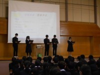英語の授業では、買い物の場面での会話練習をしました。Shall I 〜?がポイントでした。