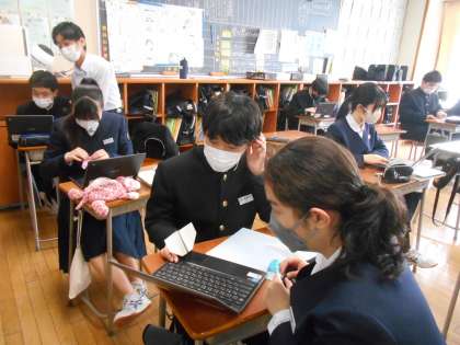 家庭科の授業では、子供の遊びを通して、子供の成長について考えました。折り紙を折ることで、ひととき小さい頃の気持ちに返る機会にもなったようです。