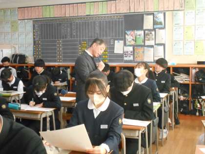 他のクラスの社会の授業でも、復習をしていました。途中担当の先生に教えてもらうことで、ちょっと緊張もほぐれ、安心できたのではないでしょうか。