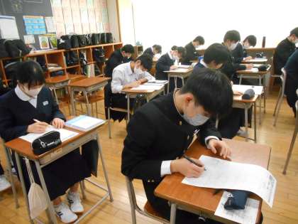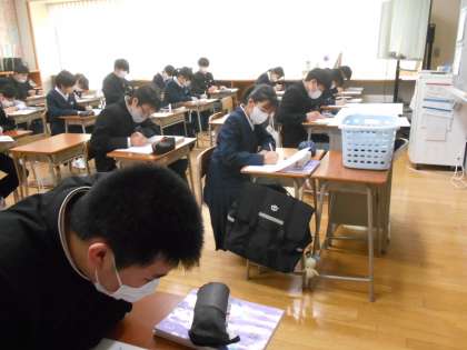 数学の授業でも、ワークシートに取り組みました。明日の私立一般入試では、落ち着いて確かめまでするように心がけましょう。