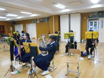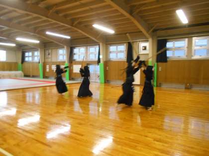 吹奏楽部は個人練習、剣道部は打ち込みをしているところでした。