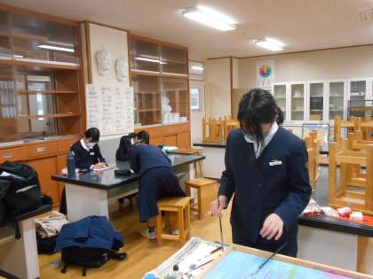 コンピュータ・サイエンス部と美術部の様子です。それぞれ自分の作品制作を進めました。完成した際に、展示や披露ができるとよいですね。