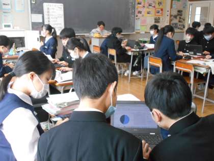 英語の授業では、Whichを使ってインタビューした結果をグラフにまとめていました。次の時間に発表するようです。